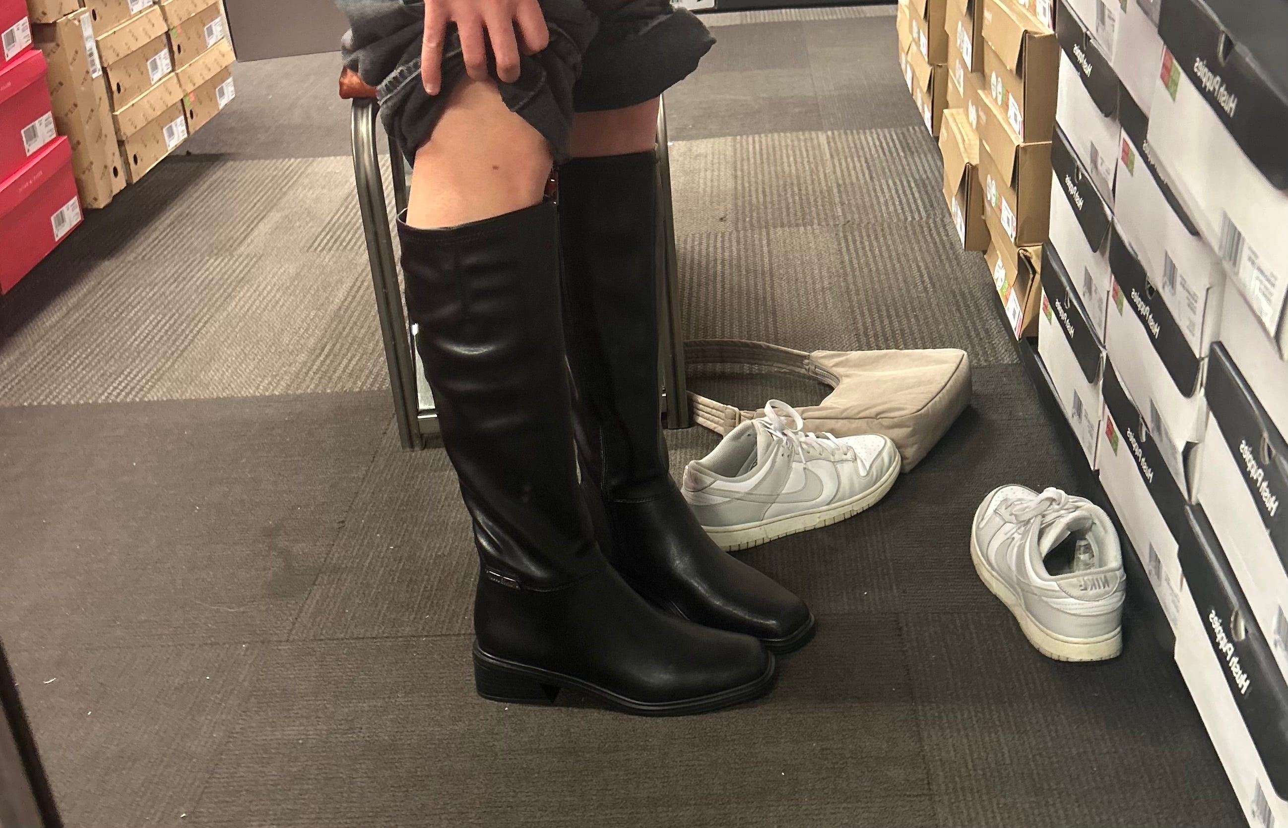 Trying on knee-high boots might be one of the most awkward shopping experiences ever. I would roll up my baggy jeans to then put on tall boots and act like I could tell if they were cute. But also, it’s not like I was going to pull up to DSW in a mini skirt. So, this has to be a common experience, right?